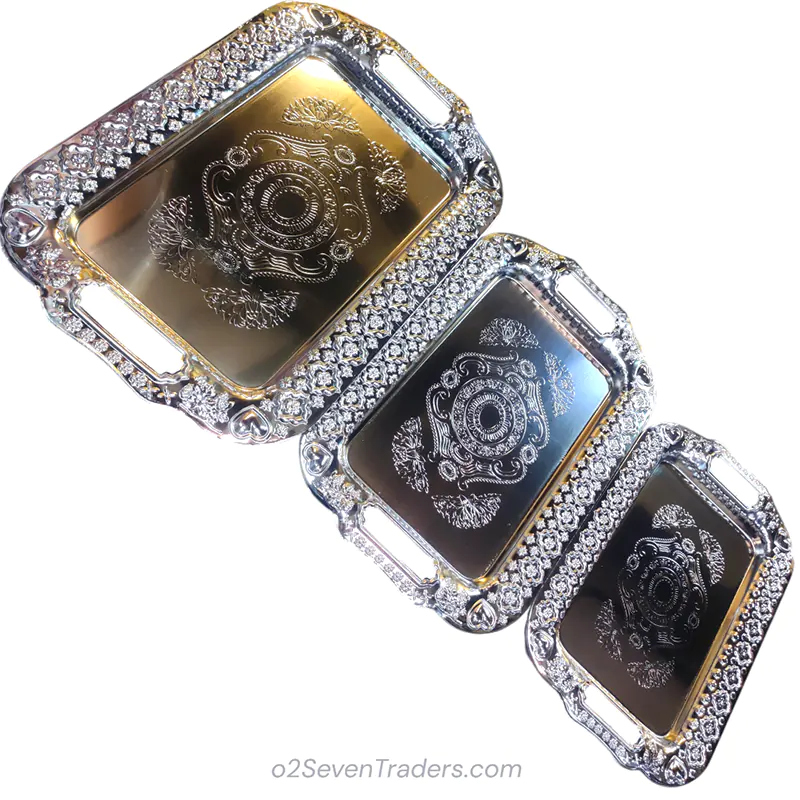 Crafted from strong, durable metal, the set has an approximate weight of 1.6kg, giving it a solid and stable feel. These trays are designed for both everyday use and special occasions, offering the perfect Style