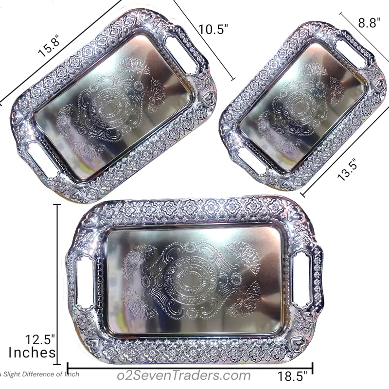 3 Pcs Silver Metal Tray Set